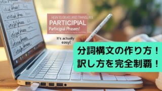 英文法 分詞構文の作り方、訳し方を完全制覇!実はかんたん! 分詞構文の作り方、訳し方を完全制覇!実はかんたん!5分で完璧!わかっているだろうではなく、初歩の初歩から説明!例文を豊富につかって理解を深められるようブログを構成してあります。最後の練習問題で理解度を確認!分詞構文の基礎固めに100%満足! 2025.06.21 英文法